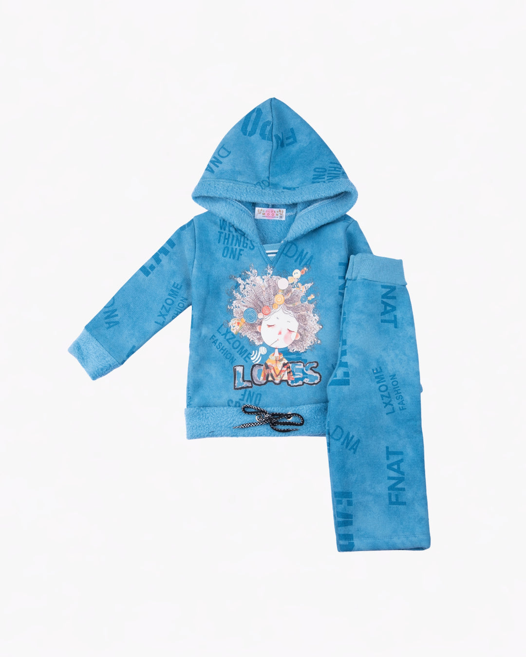 Girl Blue Print Hoodie and Pant Set