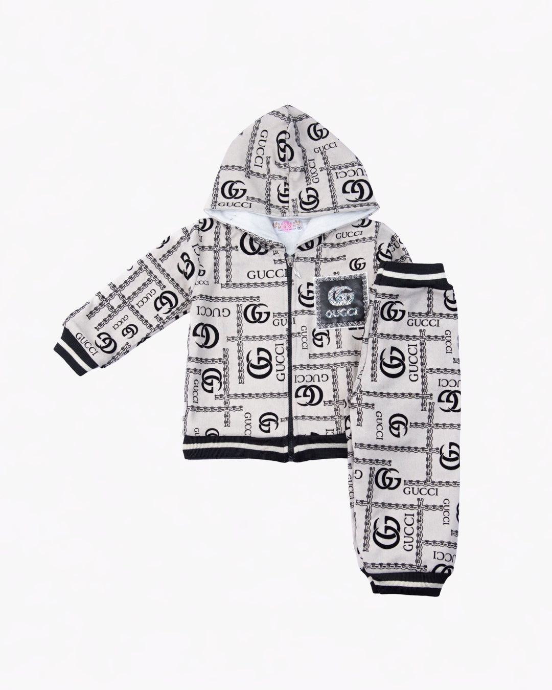 Girl White Print Hoodie and Pant Set