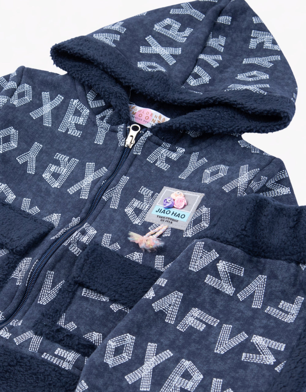 Girl Cream Patterned Zip-up Hoodie
