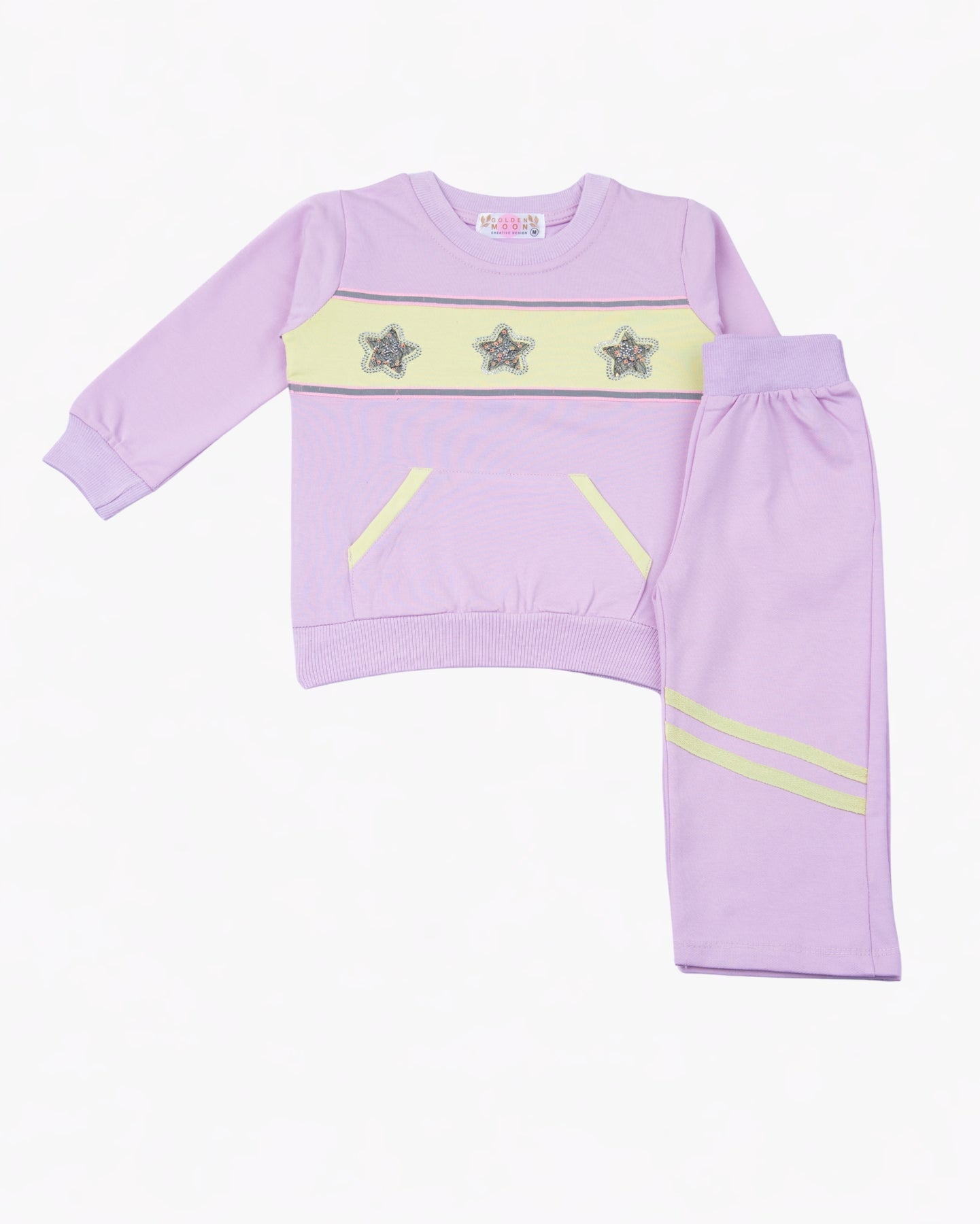 This charming two-piece set blends comfort with playful style, featuring a decorative star panel and coordinating pants. Soft, cozy, and adorable. Perfect for everyday wear, outings, or cool-weather playtime.