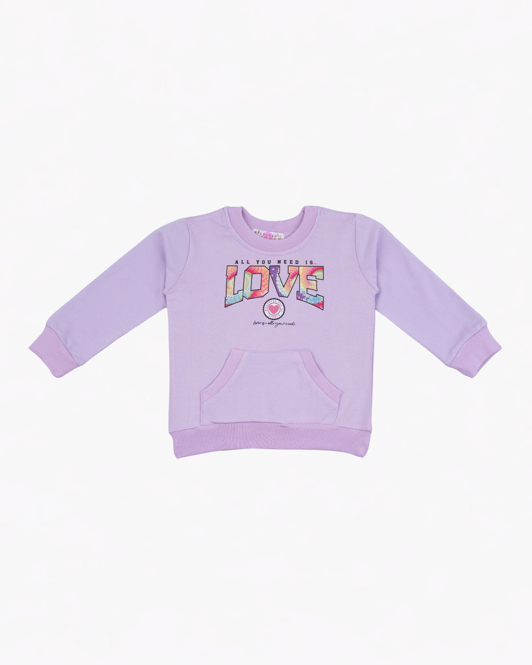 Girl Kangaroo Pocket Purple Crewneck Sweatshirt