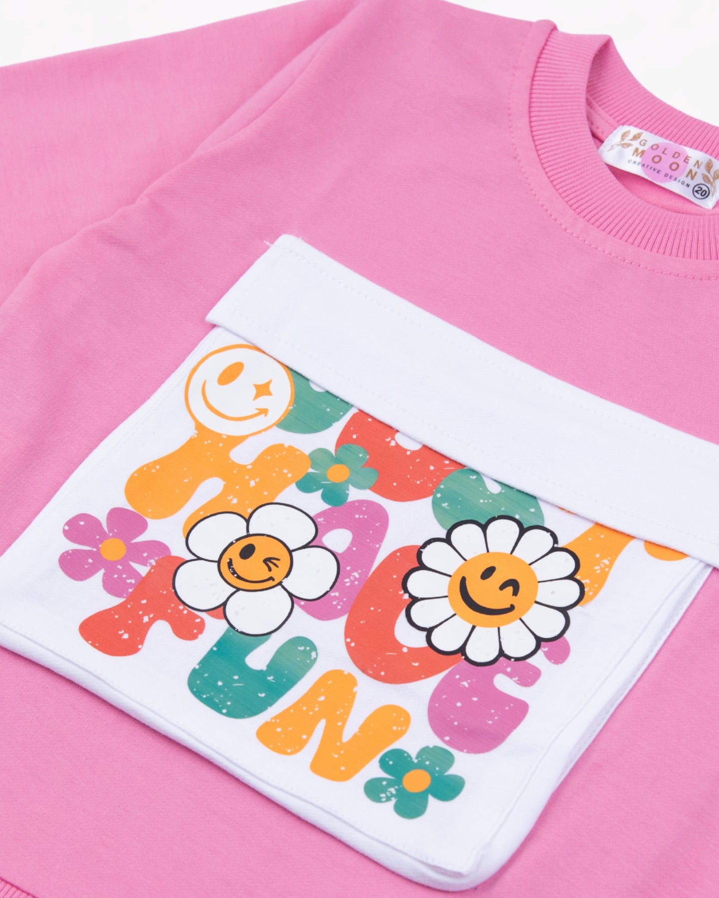 This crewneck sweatshirt features a bright floral graphic with cheerful flower characters and playful text, adding a fun and colorful touch to your baby’s everyday look. Designed with long sleeves and ribbed trims, it provides cozy comfort while allowing easy movement. Perfect for playtime, casual outings, or relaxing at home, this sweatshirt is a charming and practical wardrobe essential.