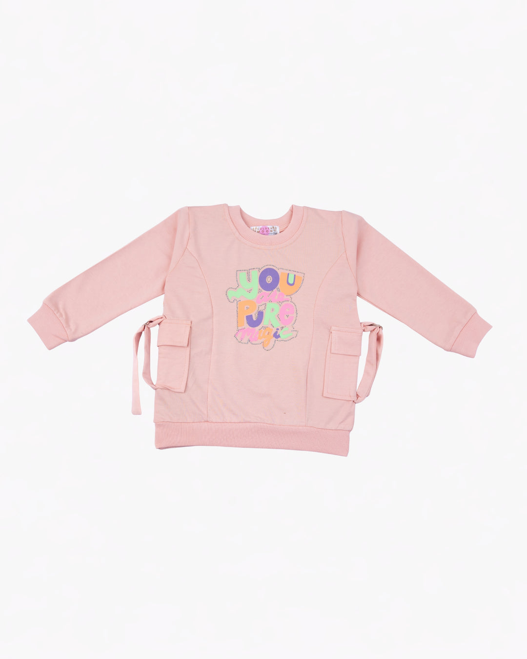 Girl Pink Cargo Pockets Crewneck Sweatshirt