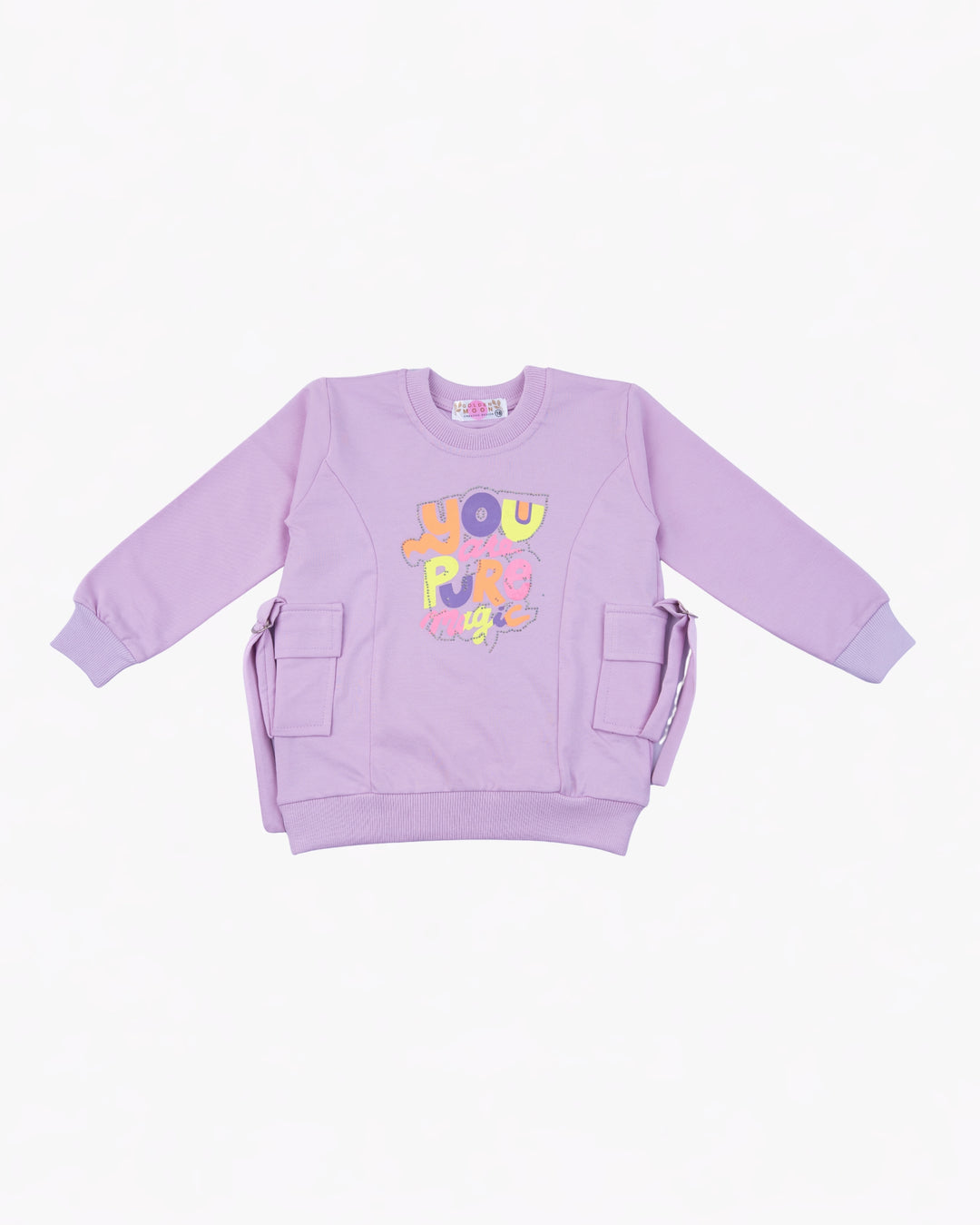 Girl Purple Cargo Pockets Crewneck Sweatshirt
