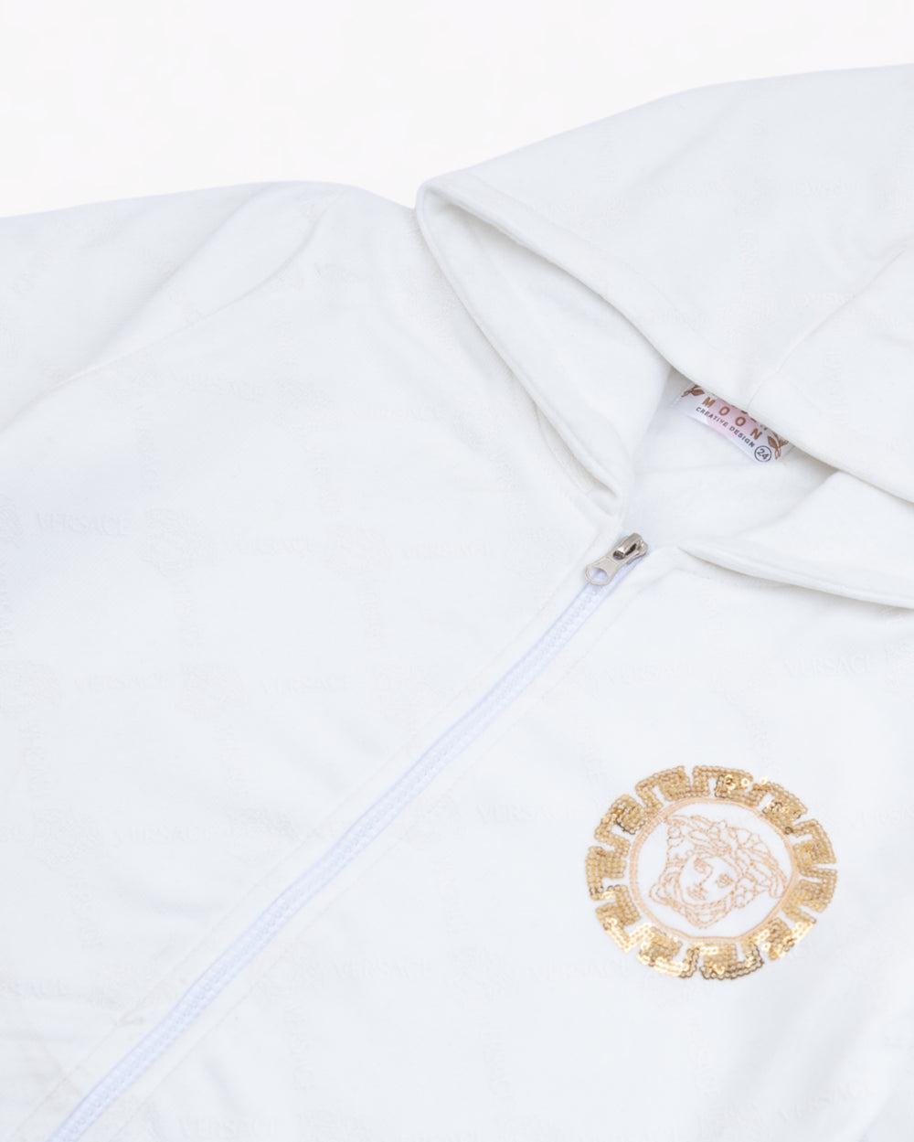 Girl White Patterned Zip-up Hoodie