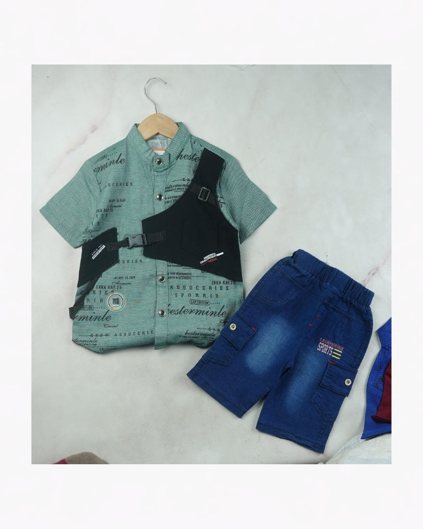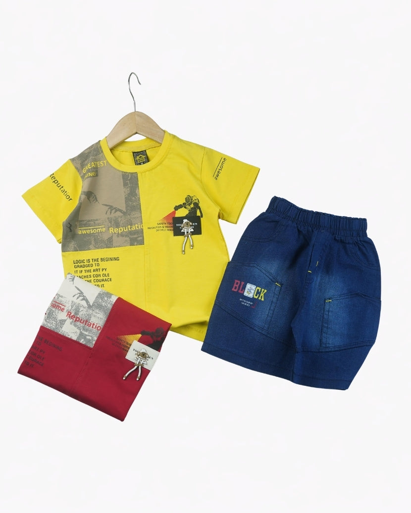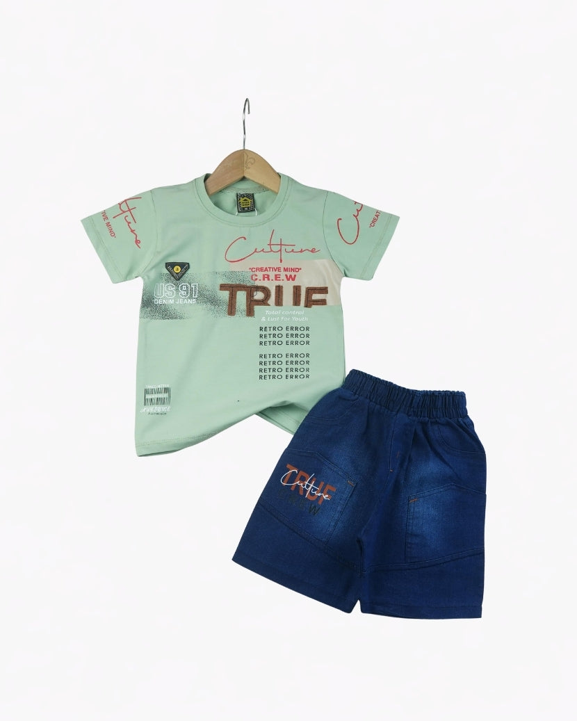 KIDS URBAN COOL GEOMETRIC TEE & DENIM SHORTS SET