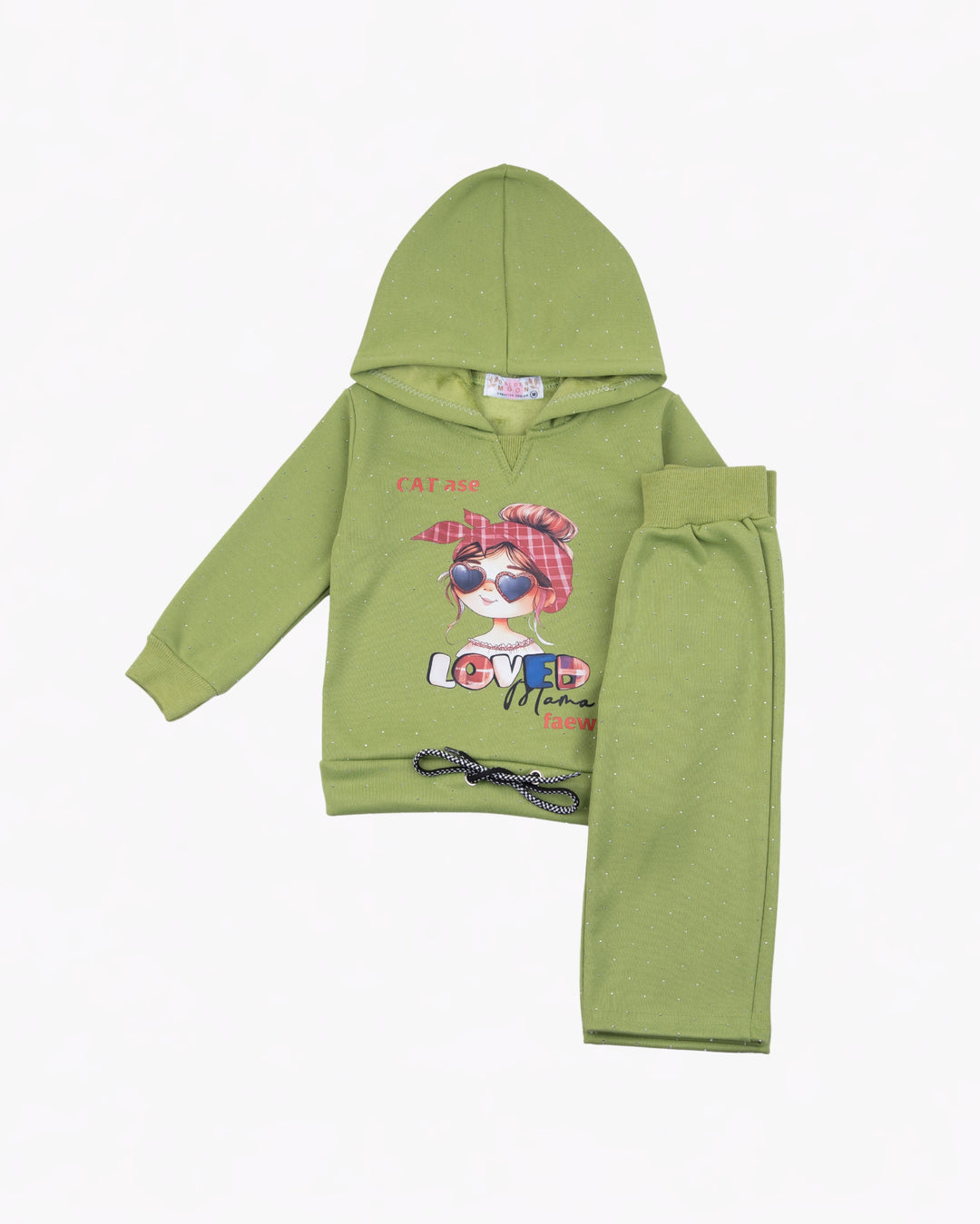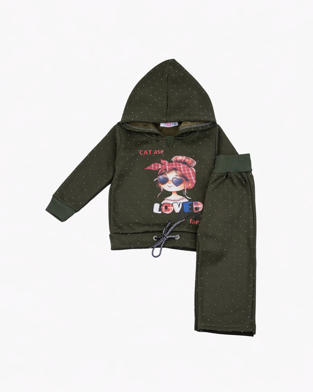 Girl Olive Cartoon Hoodie and Pant Set